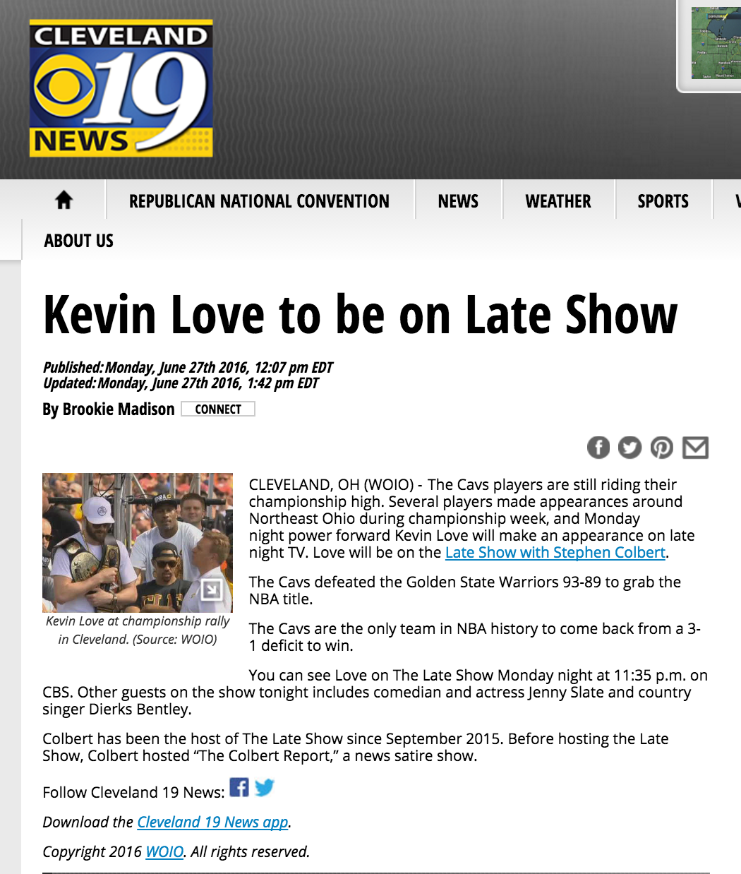 As a digital intern for Cleveland 19 News, I wrote stories daily and helped reporters get interviews for news packages. Former Browns Center, Tom DeLeone, dies at age 65 Non-proft organization calls out trump on homophobia New Campaign launches to 'trick out' transit stops Akron Police officers provide ice cream for kids Montville Police officers saves life for 3rd time kevin love to be on late show